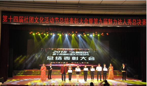 总结大会表彰了在本届社团文化活动节中表现优异的先进集体4个、先进社团20个、优秀社管委主任8名,优秀个人214名。随后举办的第九届魅力达人秀总决赛经过精彩的文艺展示,共决出一等奖一名,二等奖两名,三等奖三名。