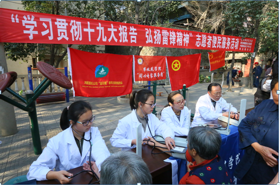 为弘扬志愿服务精神,进一步增加基层群众对自身健康状况的了解,更好地服务群众,3月5日上午,我校同心专家服务团余峰彬、王翠蓉等教师带领医学院、传媒中心学生志愿者走进东区瓜子坪街道四合院社区,开展“贯彻十九大报告,弘扬雷锋精神”志愿者便民服务活动。