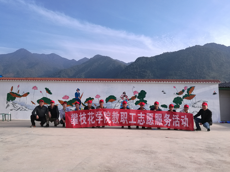 12月8日,我校艺术学院师生代表共12人,前往攀枝花市盐边县红宝乡开展为期2天的画笔描绘幸福和谐美丽乡村志愿服务活动,为红宝乡谜塘彝族村绘制墙绘作品6幅、干坪子苗族村绘制5幅,乡政府绘制书法字2幅,绘制墙绘作品共255平米。