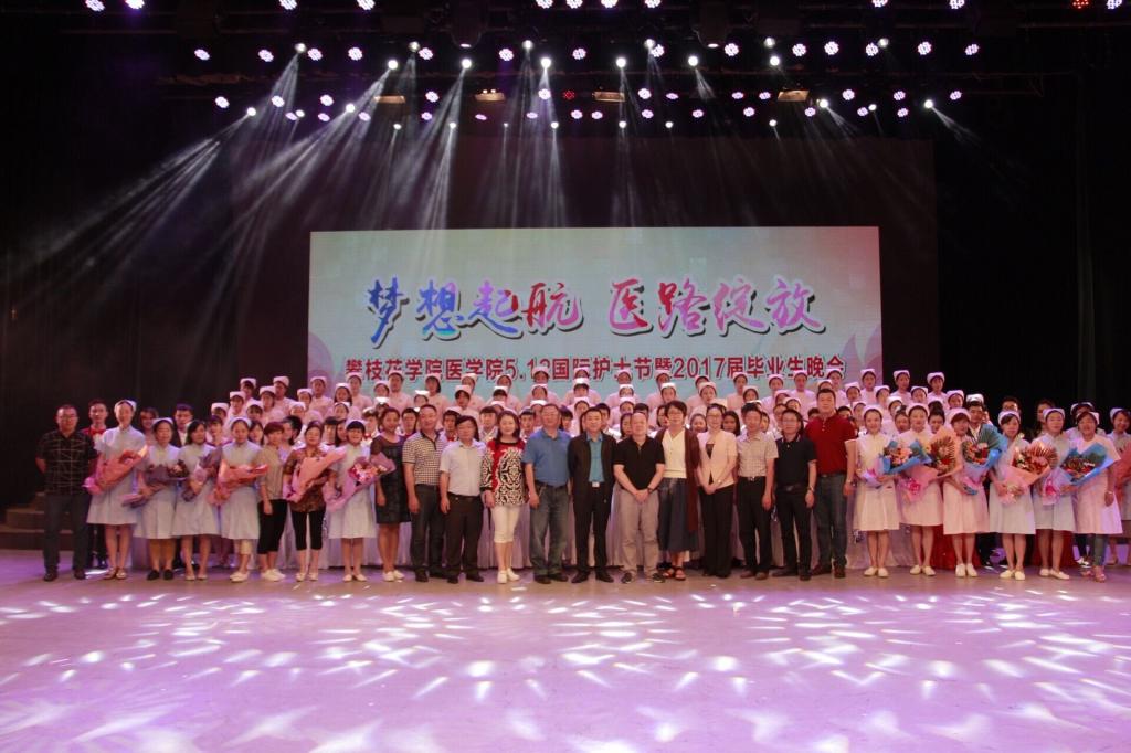 5月14日晚,医学院“梦想起航,医路绽放”5.12国际护士节暨2017届毕业生晚会在会堂举行。校党委书记肖立军、党委副书记胥刚、市中心医院党委副书记张月辉,校宣传部、学生处、医学院、附属医院、康养学院负责人及800余名师生观看晚会。