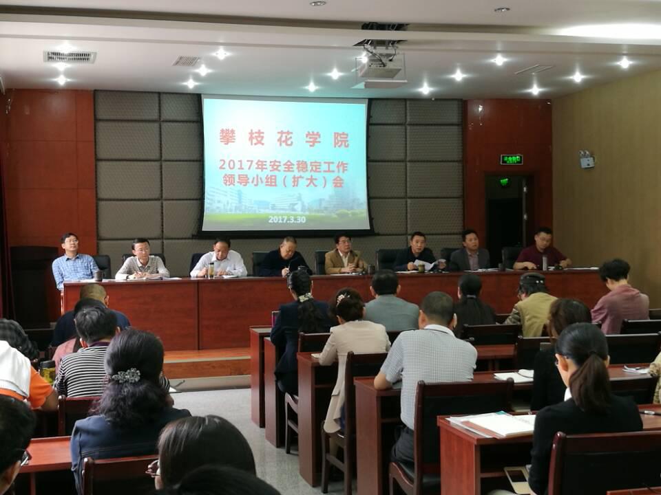 3月30日下午,学校在办公楼四楼附楼会议室召开了2017年安全稳定工作领导小组(扩大)会议。全体校领导、安全稳定工作领导小组成员单位负责人及学校其他部门(单位)党政负责人参加了会议,会议由党委副书记胥刚同志主持。