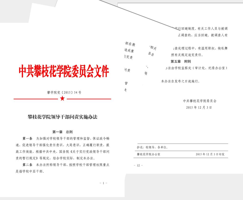 为贯彻落实党风廉政建设责任制,促进管党治党责任有效落实,近年来,学校紧紧围绕“责”字做文章,不断健全完善党风廉政建设和反腐败工作体制机制,让各级干部知责、明责、履责、述责,并加强追责和问责,层层压实党风廉政建设责任。