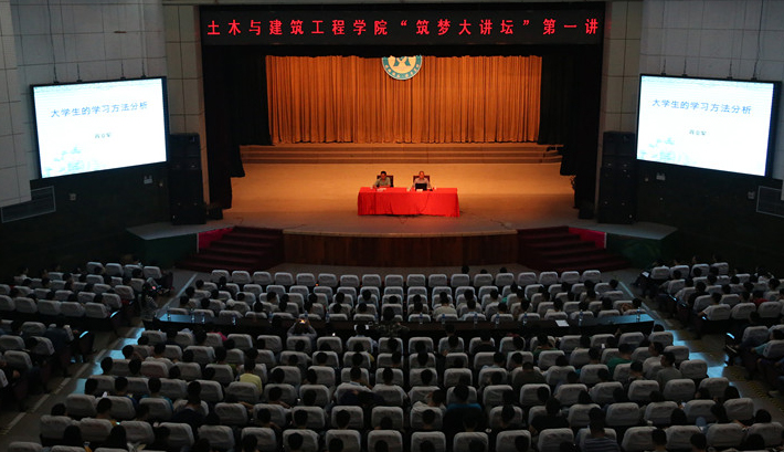 月29日晚,土建学院“筑梦大讲坛”在会堂开讲,校党委书记肖立军作第一讲,土建学院1000余名师生听取了讲座。