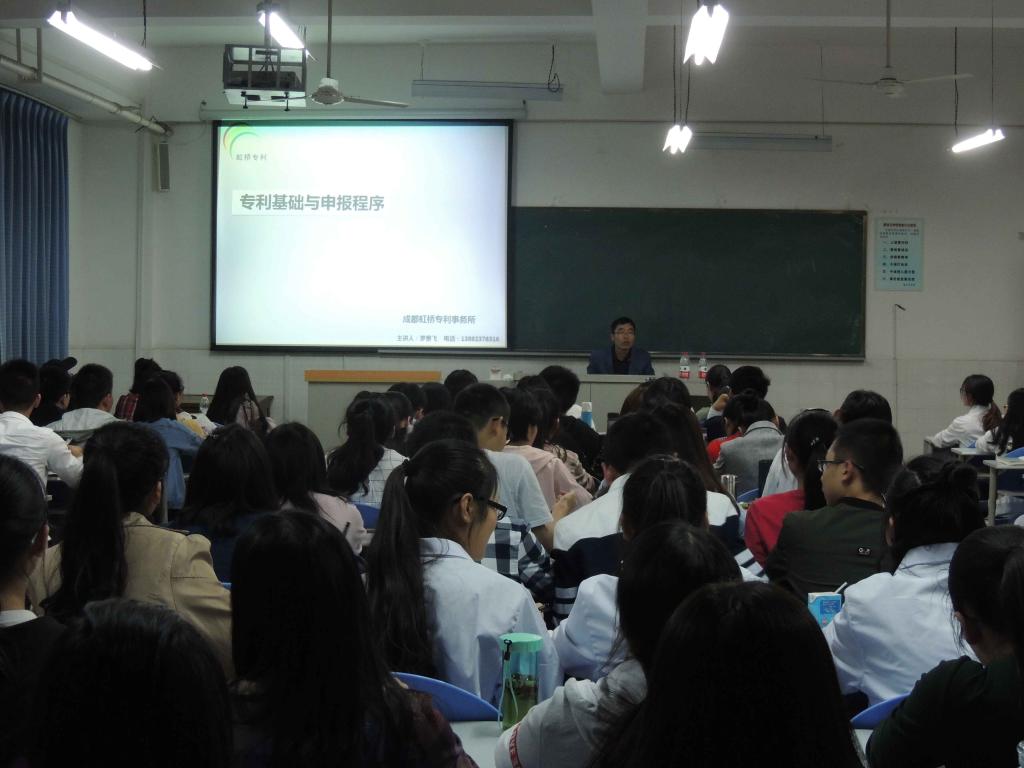 第四届“挑战杯”大学生课外学术科技竞赛提供必要的课外专业知识储备,3月7日晚,医学院邀请成都虹桥专利事务所攀枝花办事处主任黄贵飞