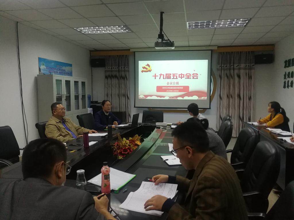 10月29日党的十九届五中全会在北京胜利结束后,我校迅速开展各种形式的学习,认真学习贯彻习近平总书记在党的十九届五中全会上的重要讲话精神和全会精神,广大师生努力做到学深悟透、融会贯通、把十九届五中全会的精神落实到具体工作中。