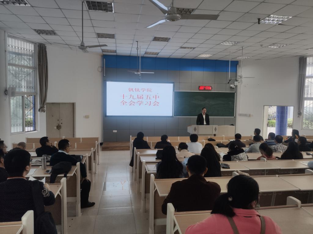 钒钛学院、体育部等其他单位都通过多种形式开展学习十九届五中全会精神,在全体师生中迅速掀起学习、宣传、贯彻全会精神的热潮,推动党的十九届五中全会精神入耳、入脑、入心,切实将广大师生思想和行动统一到全会精神上来。
