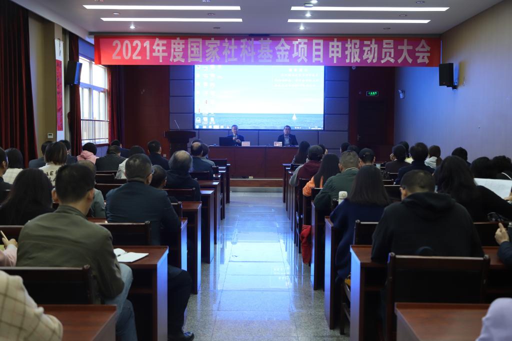 11月19日上午,我校2021年度国家社科基金项目申报动员大会在行政楼四楼附楼会议室顺利举行。西南石油大学李学林教授作国家社科基金项目申报辅导。副校长张旭辉出席大会并作动员讲话。各文科学院主要领导和教师代表参加会议。