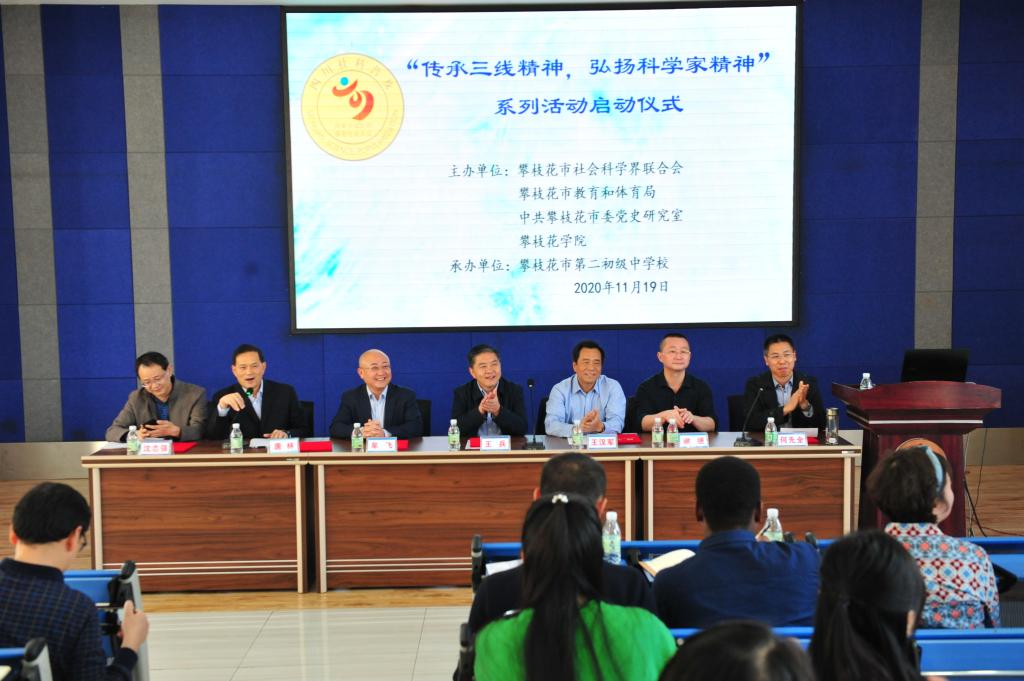11月19日下午,下载香港宝典2021与市社科联、市教育和体育局、市委党史研究室联合主办的“传承三线精神,弘扬科学家精神”系列科普讲座活动启动仪式在攀枝花市二中举行。市社科联常务副主席王汉军,下载香港宝典2021副校长王兵等相关领导和即将在全市中小学校开展科普讲座的“博士宣讲团”出席了启动仪式。