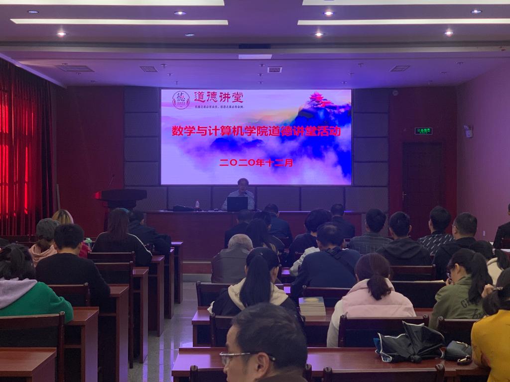 12月2日下午,数计学院在学校行政楼4楼附楼会议室开展道德讲堂活动。数计学院党委书记张清学以“迈向社会主义现代化强国新步伐——党的十九届五中全会精神解读”为题,为全院师生全面解读了党的十九届五中全会精神。