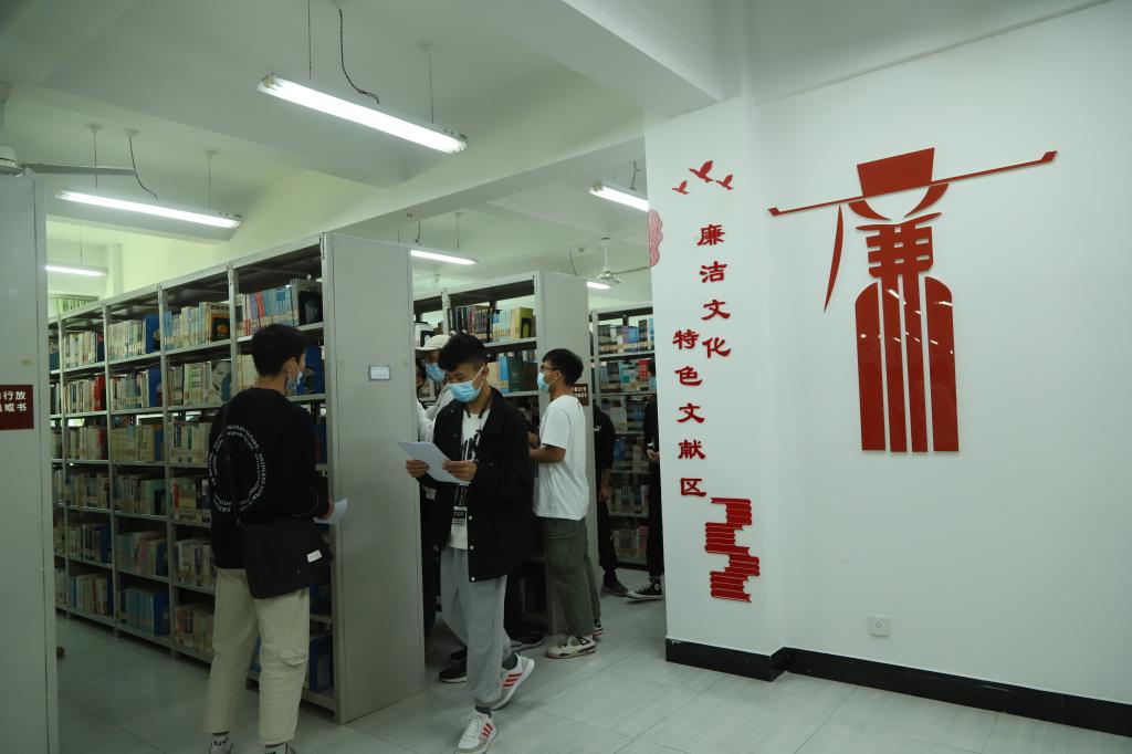 然后,师生代表到图书馆“廉洁文化特色文献区”,开展借阅廉洁文献书籍的打卡行动,同学们将按照老师的要求认真阅读廉洁文献和书籍、撰写个人心得体会,编写廉洁文化手抄报。