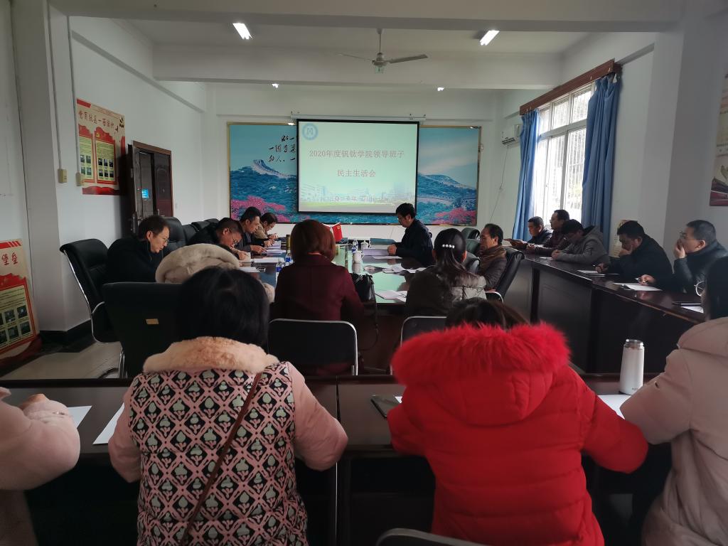 1月11日下午,钒钛学院在励志楼一楼会议室召开了2020年度学院领导班子民主生活会。副校长石维富出席指导,学校民主生活会督导组成员熊礼贵、学院领导班子成员参加会议,非班子党委委员、纪委委员、组织员、科室负责人、系主任、工会主席、分团委书记列席会议。
