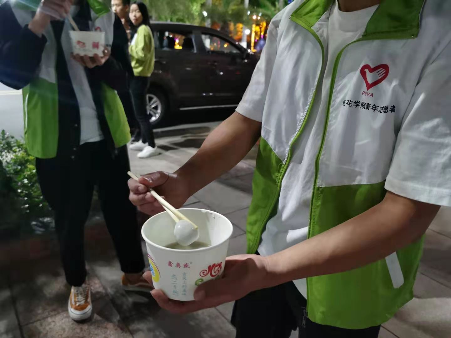 2月26日,是我校学生志愿者服务大队为春季新学期开展志愿服务的第二天,也是中华民族传统佳节——元宵节。在疫情防控常态化背景下,这个本该与家人共度元宵佳节的日子,同学们提前返校以饱满的热情投入到疫情防控志愿服务中,用实际行动展现新时代大学生奉献、友爱、互助、进步的志愿精神,成为“自律攀大人”一道靓丽的风景线。为了感谢同学们的默默奉献,后勤管理处组织学生三食堂将一碗碗热气腾腾的汤圆送到了同学们手中,向他们表示感谢,让他们在这个不一样的元宵夜里,感受到家一样的温暖。