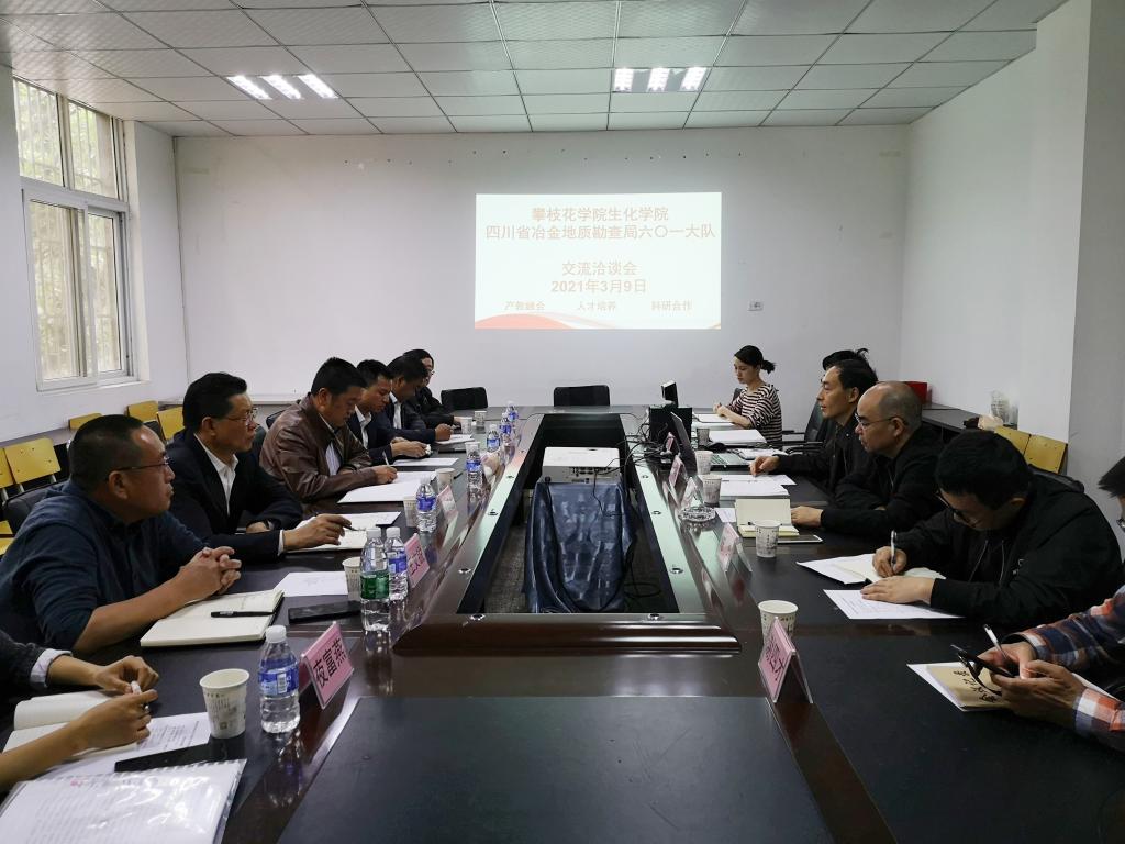 为进一步落实产教融合,加强与攀枝花本土企业合作,3月9日下午,我校生化学院与四川冶金地质勘查局六〇一大队在博学楼二楼会议室举行交流洽谈会,就互相关心的产教融合、人才培养、科研合作等进行了深入交流。四川省冶金地质勘查局六〇一大队党委书记马建忠,生化学院党政负责人及部分教师参加洽谈会。