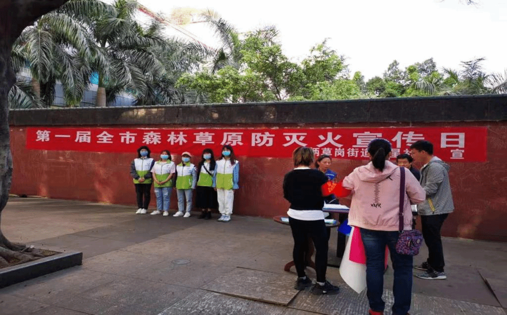 3月12日上午,我校学生志愿服务大队智能制造志愿服务站和炳草岗街道红星社区工作人员一起宣传森林防火知识。
