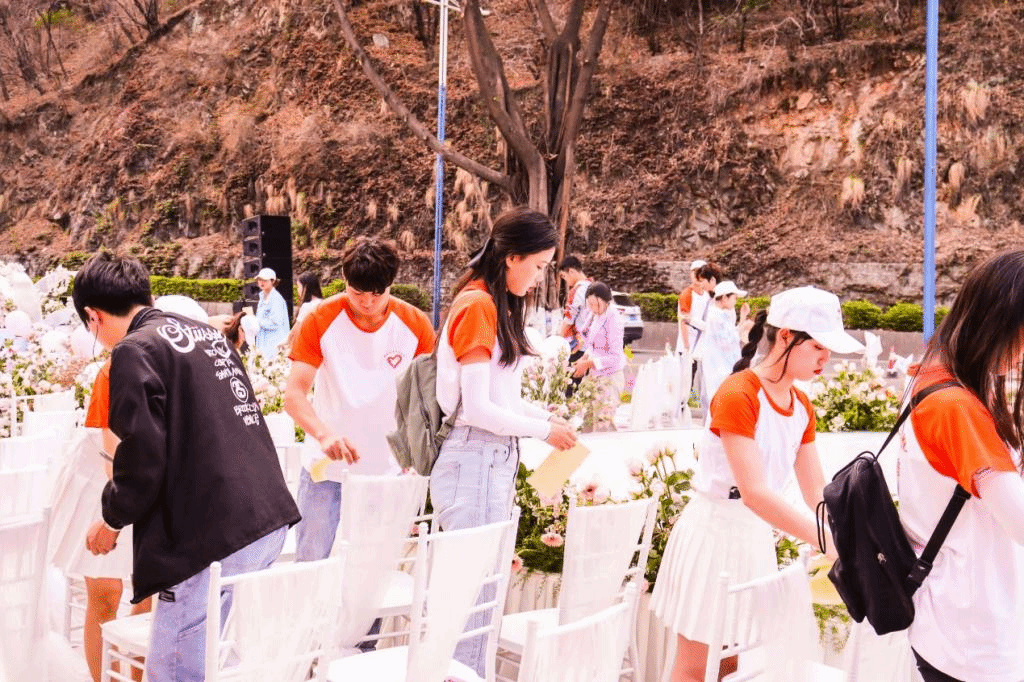 传递每份爱,点燃颗颗心。3月21我校青年志愿者前往“两江三桥”三线文化景观处为首届青年集体婚礼提供志愿服务。为塑造良好的志愿者形象,前期在我校选取数十名志愿者参与志愿培训。志愿者们在市团委老师的带领下进行培训与实操,从仪容仪表、手势、坐姿、站姿、走姿等各方面进行详细指导和规范学习。活动现场,志愿者们分组完成志愿引导。活动主要展开方式为帮助参与婚礼的新人保管随身物品,协助布置活动现场座位,全程陪同新人以供所需。本次活动的开展弘扬了“志愿精神”,树立学习文明节俭的社会主义新风尚,进一步深化志愿服务影响力。