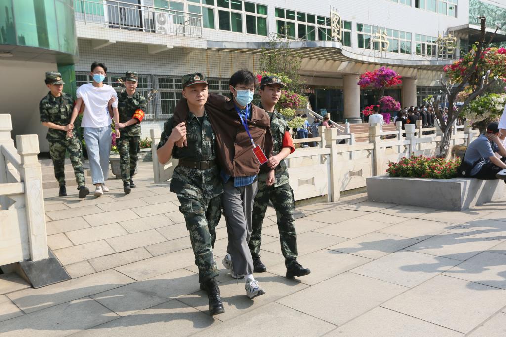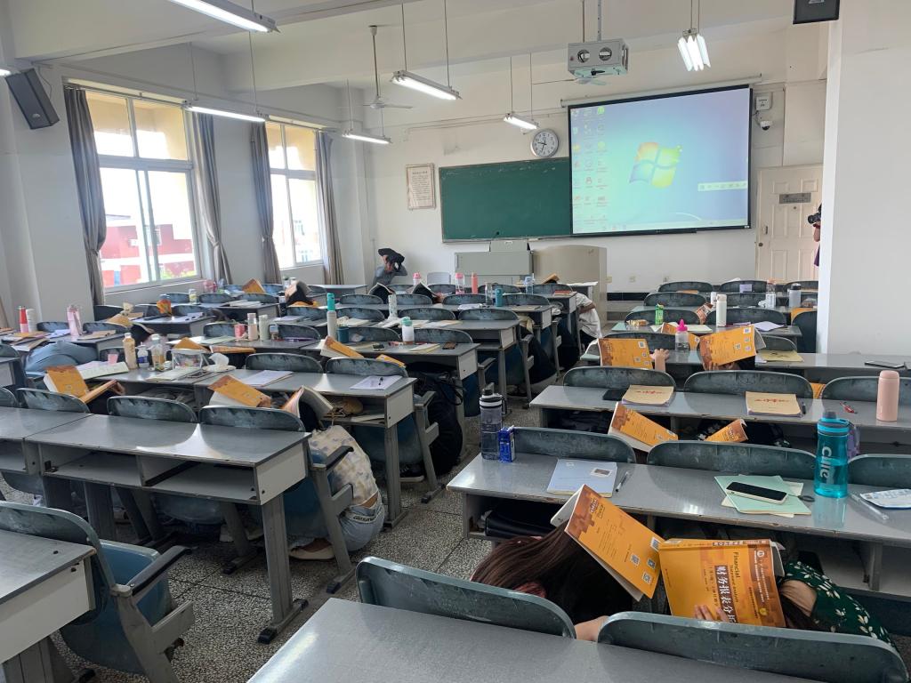 30秒后,在授课教师、志愿者、辅导员和公寓管理员等指引下,同学们迅速从教室、寝室、图书馆等地有序疏散,安全快速到达各集结点。