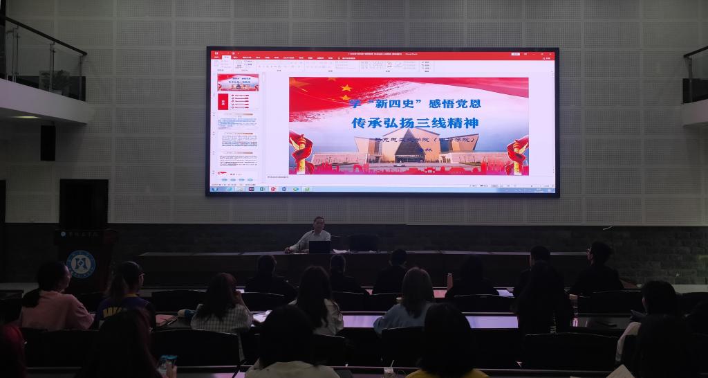 讲座围绕“学习党史感悟党恩”、“为什么学、学什么、如何学”、“三线建设回顾、杰出成就、典型事迹”、“传承弘扬三线精神做自律攀大人”四个方面展开。