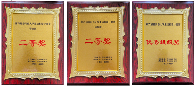 我校两支参赛队伍在郭剑、史新君、许文波、刘瑞峰4位教师的指导下,与来自四川大学、西南交大等23所高校的42支代表队进行了激烈角逐,最终斩获结构组二等奖和岩土组二等奖,荣获本届竞赛优秀组织奖。
