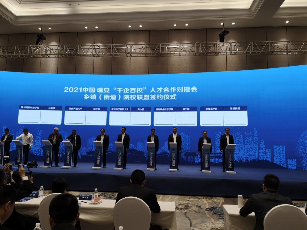 在瑞安2021“千企百校”签约仪式中,王兵代表我校与瑞安市锦湖街道进行了现场签约。