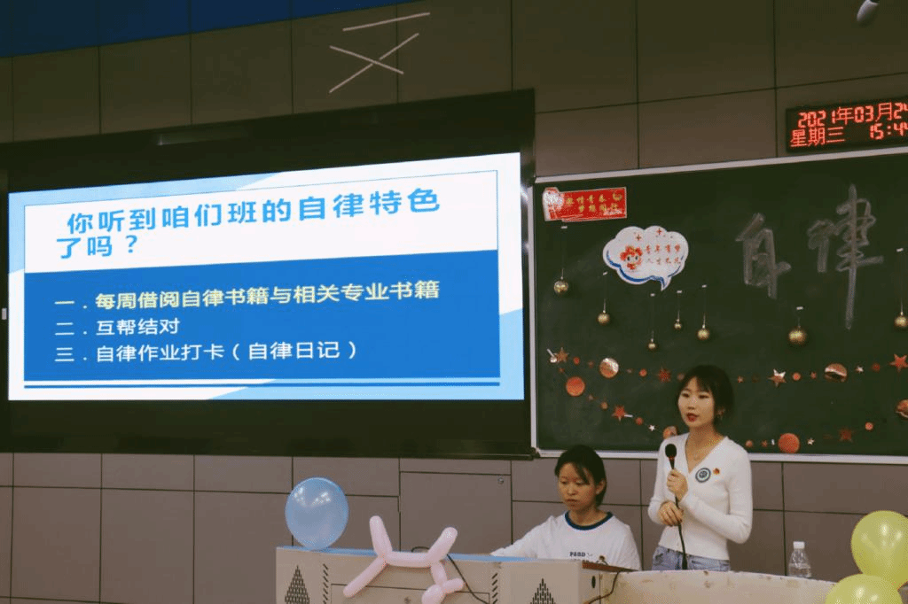 各班级围绕如何做自律攀大人,讨论推选班级“自律典范”开展主题班会,探讨自律内涵,引导学生全面深入理解自律内涵,把握自律的精神要义,从而将自律内化于心,做到愿意自律,能够自律,成为自觉,实现自强。