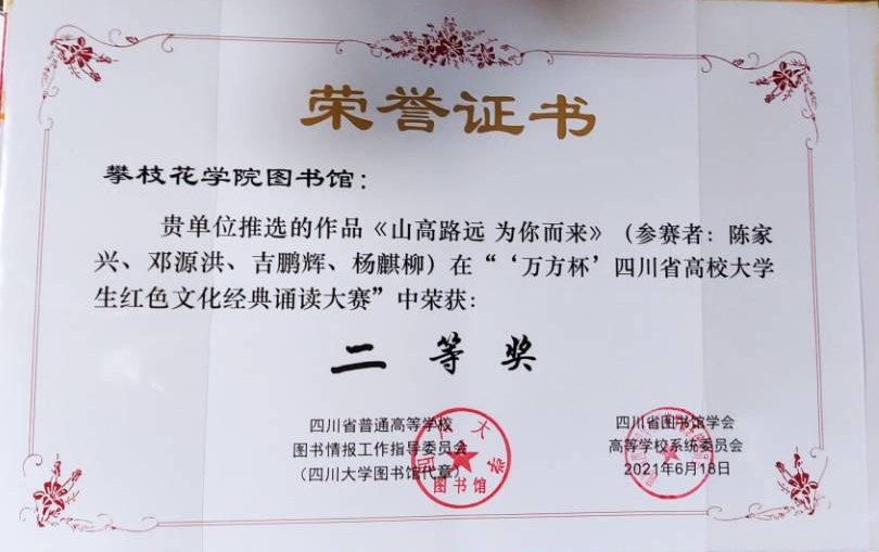6月18日,“万方杯”四川省高校大学生红色文化经典诵读大赛在四川大学圆满落幕。我校参赛同学表现沉着冷静而又热情洋溢,充分展现了自律攀大人良好的精神风貌,并喜获佳绩。