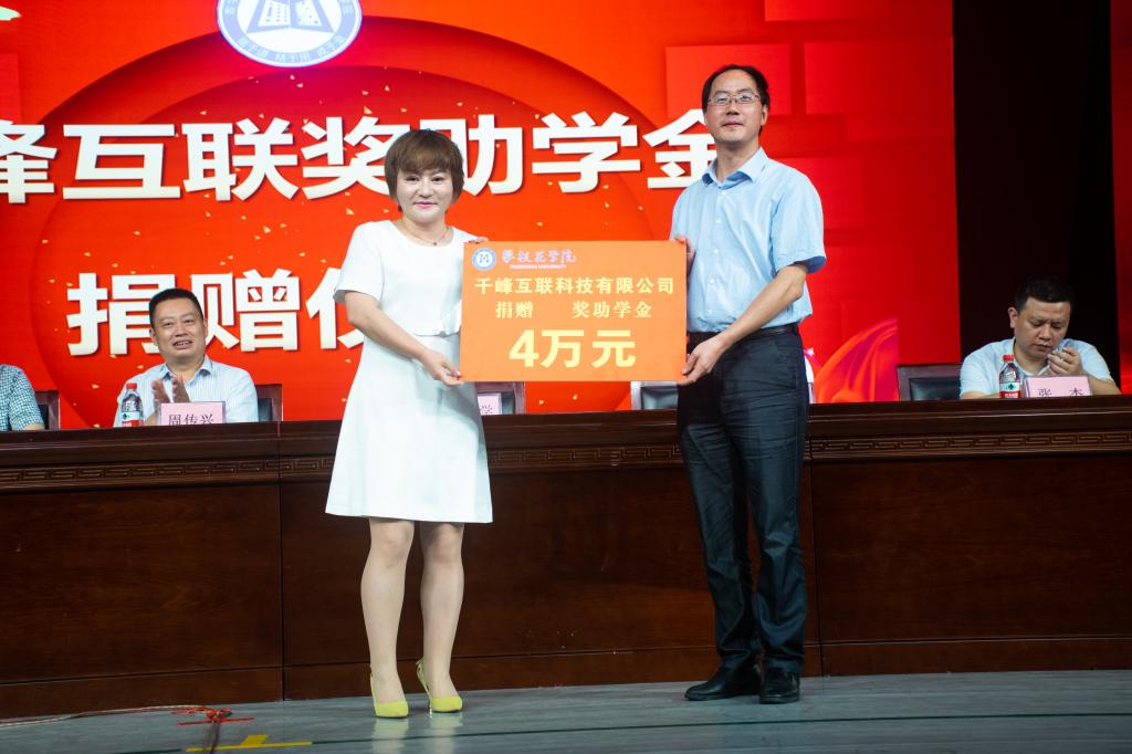 王雪青代表千锋互联科技有限公司向数计学院捐助奖助学4万元,并代表公司表达了校企合作的积极意愿。她希望同学们能够勤奋努力,不忘初心,牢记使命。同时也承诺公司将会围绕数计学院人才培养给予更大的支持,为学生探索更多更好的学习实践机会。