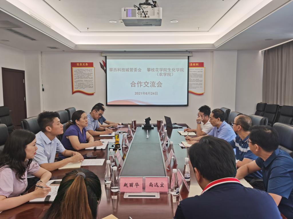 6月24日,生化学院(农学院)与攀西科技城管委会在科技城管委会会议室举行合作交流会,双方就产教融合、农业科研成果转化领域等进行了深入交流。攀西科技城管委会副主任刘明芳、生化学院行政负责人、科技城产业发展部负责人、花投公司资产运营部负责人、农业领域专家出席交流会。