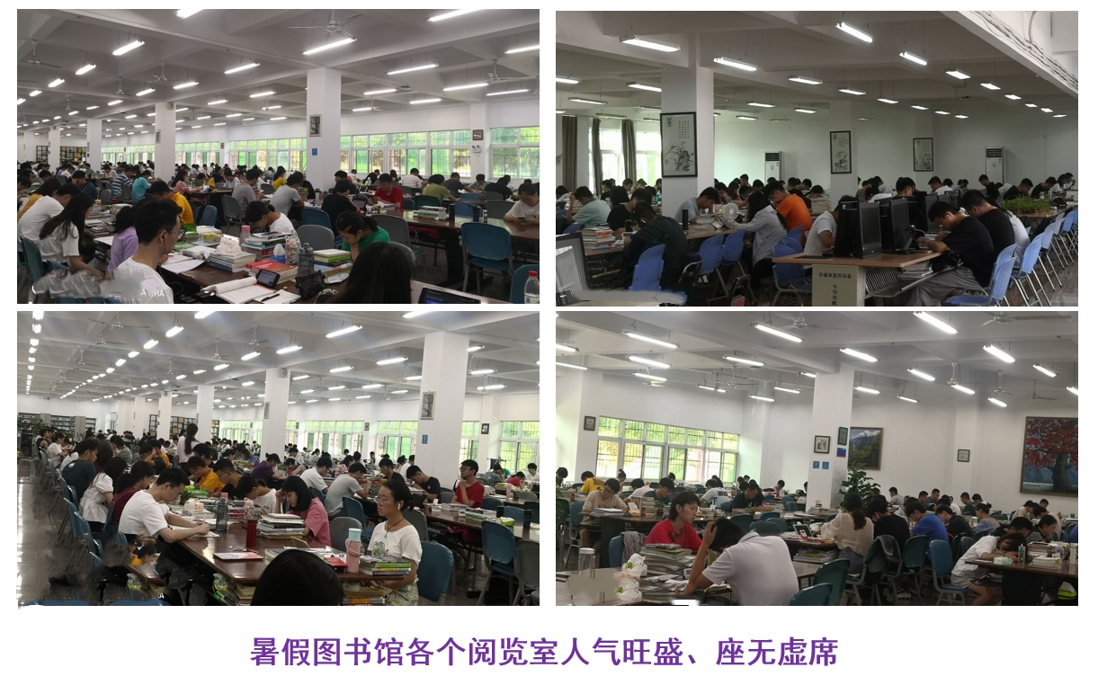 为保障师生暑假学习、科研和工作需要,特别是考研学生备考复习需要,图书馆暑假不休息,服务不打烊,坚持开放服务,服务做到常态化、多样化和精细化。