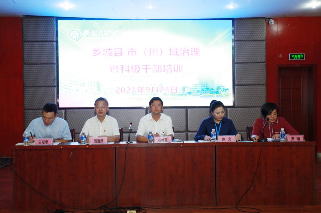 9月23日,我校承办的乡城县市(州)域治理暨科级领导干部培训班开班。校党委常委、副校长石维富,乡城县组织副部长冰忠,校党政办公室负责人及相关负责人等出席了开班典礼,乡城县新近提拔的32名科级干部参加开班典礼。