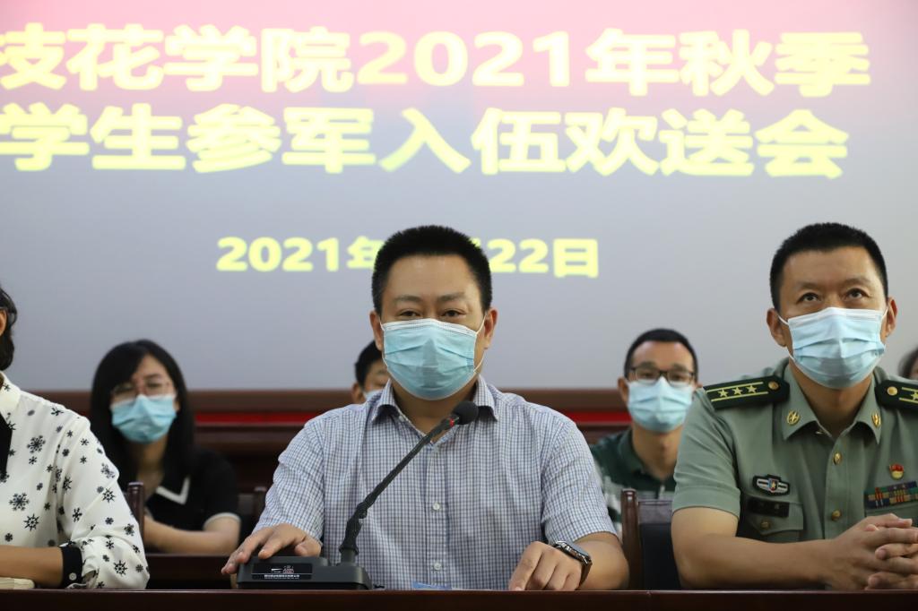 会上,学工部(武装部)部长周传兴对通过层层选拔后光荣参军入伍学生表示热烈祝贺,他讲到同学的光荣就是老师的光荣,是学校的光荣,并且叮嘱同学们:一是入伍后要不断提高政治站位,坚定不移听党话、跟党走,心怀祖国,献身国防,报效祖国;二是在部队要淬炼成钢,为国家国防建设贡献攀大人的力量,做自律攀大人标兵;三是入伍后要加强与学校、老师的联系,经常汇报思想、学习情况。