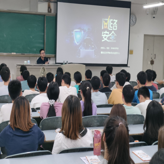 朱泓玦和刘杰分别通过对典型案例分析,网络安全纪律,网络防火墙系统演示等方面,为同学们普及了遵守网络安全的重要性以及破坏网络安全带来的严重后果,号召青年大学生积极行动起来,严格遵守网络安全纪律规矩,为共建和谐网络安全空间贡献青春力量。同时希望网络工程及相关专业的同学能立足专业,学好技能,服务于学校网络安全维护,投身于国家网络安全建设发展的事业中去。