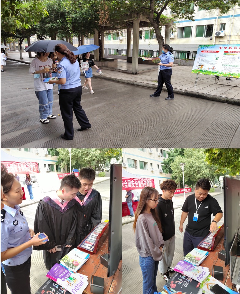 6月16日,校保卫部、学工部联合攀枝花市东区禁毒办在学生公寓区开展禁毒知识宣传教育活动。