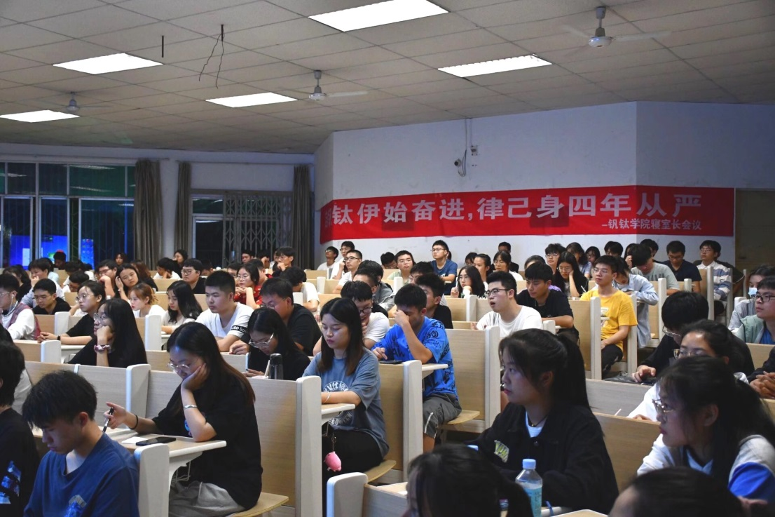10月15日,钒钛学院召开寝室长会,指出寝室脏乱差现象、违规使用电器、作息时间无规律、集体观念弱等问题,强调公寓自律行为是自律攀大人的基石,寄望寝室长积极发挥先锋模范作用,带动寝室成员共同自律自强、奋发向上。