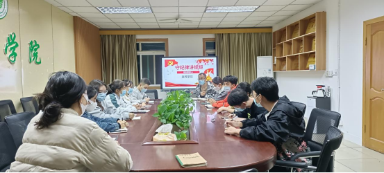 分团委负责人担任主讲人,他希望学生干部和少数民族代表能在学生群体中起模范带头作用,充分发挥引领示范作用,学好“守纪律、讲规矩”的基础课。他表示,在疫情常态化背景下,各位学生干部和少数民族代表要加强在学生内部新冠肺炎疫情防控知识宣传引导,树立自身是第一健康责任人和保持个人防护的意识,积极配合学院和学校的疫情防控工作;将纪律规矩意识传递给身边的每位同学,围绕“自律攀大人”品牌建设坚持服务意识和底线意识,做好自我的管理者和同学的服务者,进一步加强作风和学风建设,营造风清气正的成长环境;学生干部和少数民族学生代表要在学习和生活中互帮互助、共同画出“自律攀大人”的同心圆。