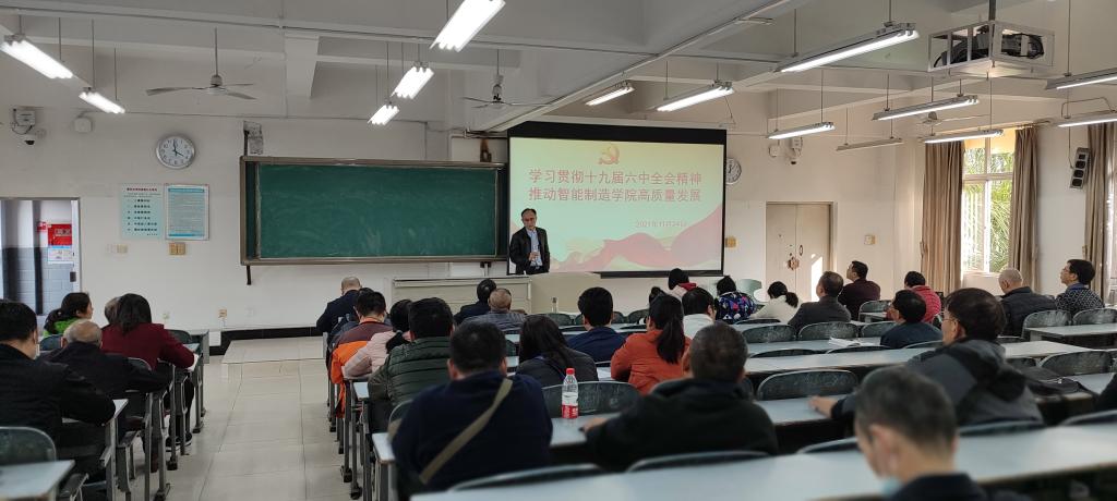 中国共产党第十九届中央委员会第六次全体会议胜利闭幕,伟大成就鼓舞人心,新的征程催人奋进。11月25日下午,智能制造学院党委负责人主持召开专题学习会,从全会概括、重要意义、全会看点等方面认真学习全会精神。