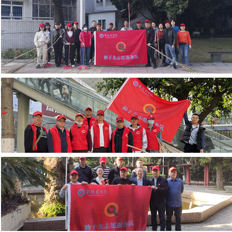 在学校第一教学楼、图书馆、分测中心、秀园、万达广场人行过街天桥等区域,队员们有的清扫落叶,有的清理沟渠,有的清除牛皮癣,有的打捞喷泉池杂物,有的擦拭电梯、扶手,有的检查维修直饮水机等公共设施,有的装运垃圾,干得热火朝天、不亦乐乎。在大家的共同努力下,沟渠、路面、轿厢、池水等很快被清扫擦拭清理干净,焕然一新。劳动现场那一抹抹红色马甲和帽子俨然成为自律后勤一道靓丽的风景线,过往师生和市民纷纷竖起大拇指。