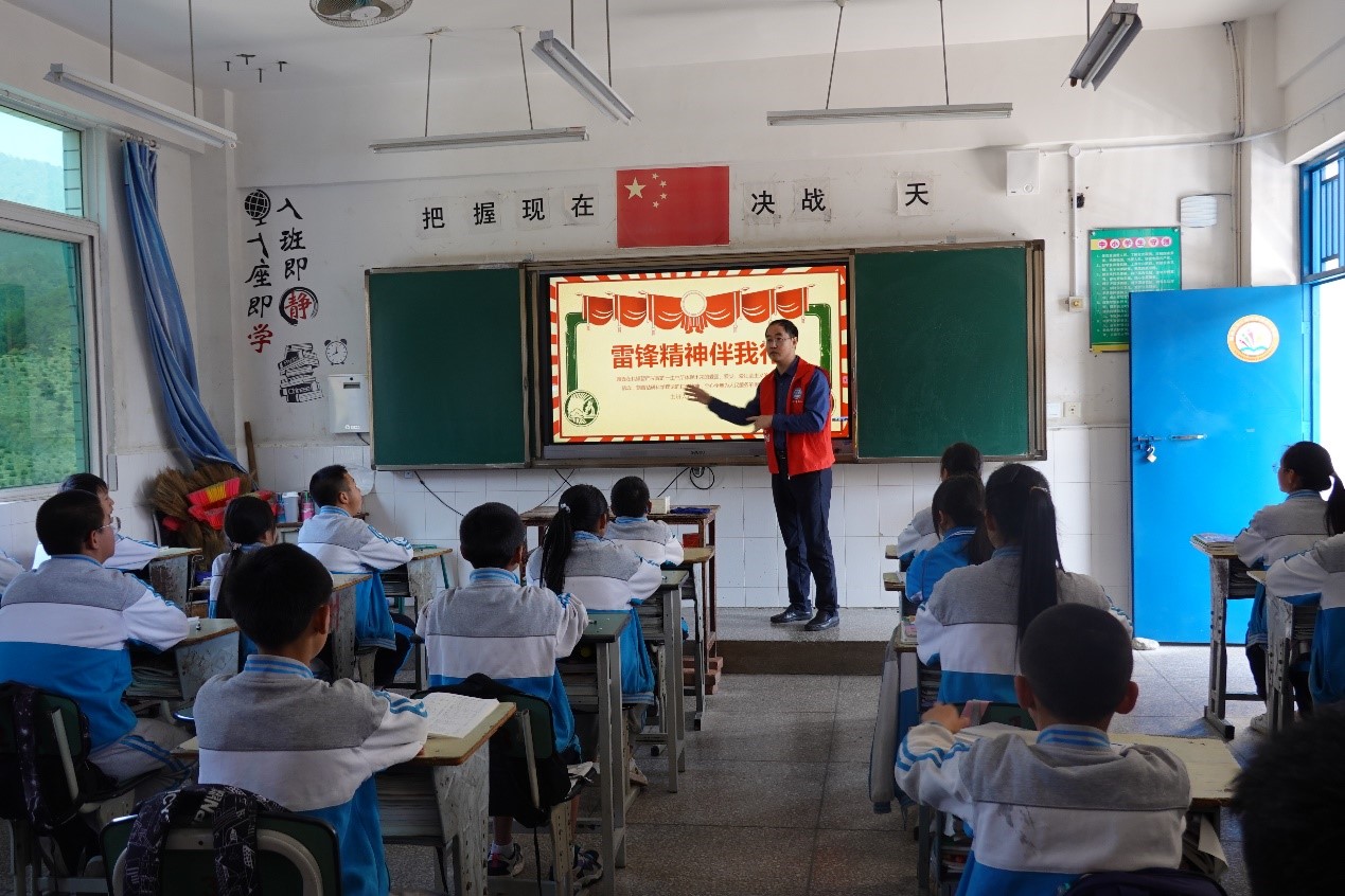 为传承雷锋精神,在第59个学雷锋日到来之际,数学与计算机学院学生第一党支部于3月8日早上,前往攀枝花市仁和区务本中心校开展了“自律攀大人·青春志愿行”学雷锋志愿服务及主题党日活动,深入该校七年级学生班级,开展了“雷锋精神伴我行”党史党课学习宣讲活动。数计学院党委负责人、务本中心校校长李波、数计学生第一党支部师生党员、志愿者代表参与本次活动。