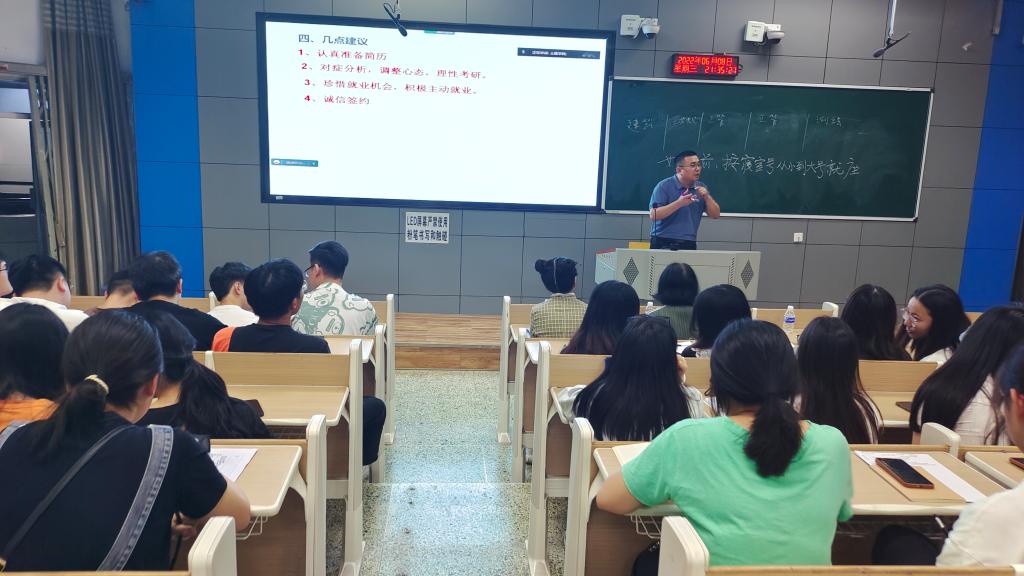 动员会上,相关老师从授位条件、学分清理、绩点核算、成绩认定、求职简历制作等多维度提醒毕业生要做好毕业准备工作;党委负责人全面分析了学院近五年毕业生的就业、考公、考研情况以及当下毕业生求职心理,并从就业形势、就业心态、就业去向和就业要求方面对2023届毕业生提出了希望和建议。