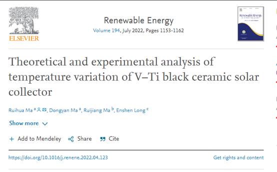 近日,我校土建学院教师马瑞华作为第一作者和通讯作者,以下载香港宝典2021为第一单位,在国际权威期刊《Renewable Energy》上发表题为“Theoretical andexperimental analysis of temperature variation of V–Ti black ceramic solarcollector”的研究成果。