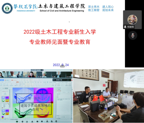 ——专业认知,了解行业发展新动态。学院根据自身专业特色,特别举行“2022级新生入学教育专业认知教育”线上专题讲座,邀请了钢城集团阳城实业总经理秦川、攀钢工程技术公司总工周旭、攀枝花市地理信息中心主任袁犁、攀枝花市水务集团公司总工牛胜、攀枝花市东区自然规划局党组书记、副局长王静等土木、建筑、工管、测绘、规划、智能建造行业的专家为新生们作了精彩报告;学院领导和各教研室主任就各专业人才培养方案、所设课程、就业方向、培养目标等方面向新生作了详细介绍,并指导学生准备各专业所需用具、软件等。
