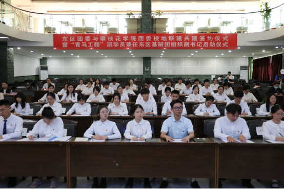为深入贯彻落实党的二十大精神,丰富青年人才工作阅历,务实推动校地深化合作,助力东区经济社会发展。3月24日下午,校团委在学术报告厅与东区团委举行了校地联建共建签约仪式暨“青马工程”班学员兼任东区基层团干部启动仪式。东区区委常委、统战部部长郭江,东区团委书记卢骏菲和各街道负责人出席,我校组织部、宣传部、团委相关负责人,各二级学院分团委书记和第三期“青马工程”班学员参会。会议由我校团委书记王鹃主持。