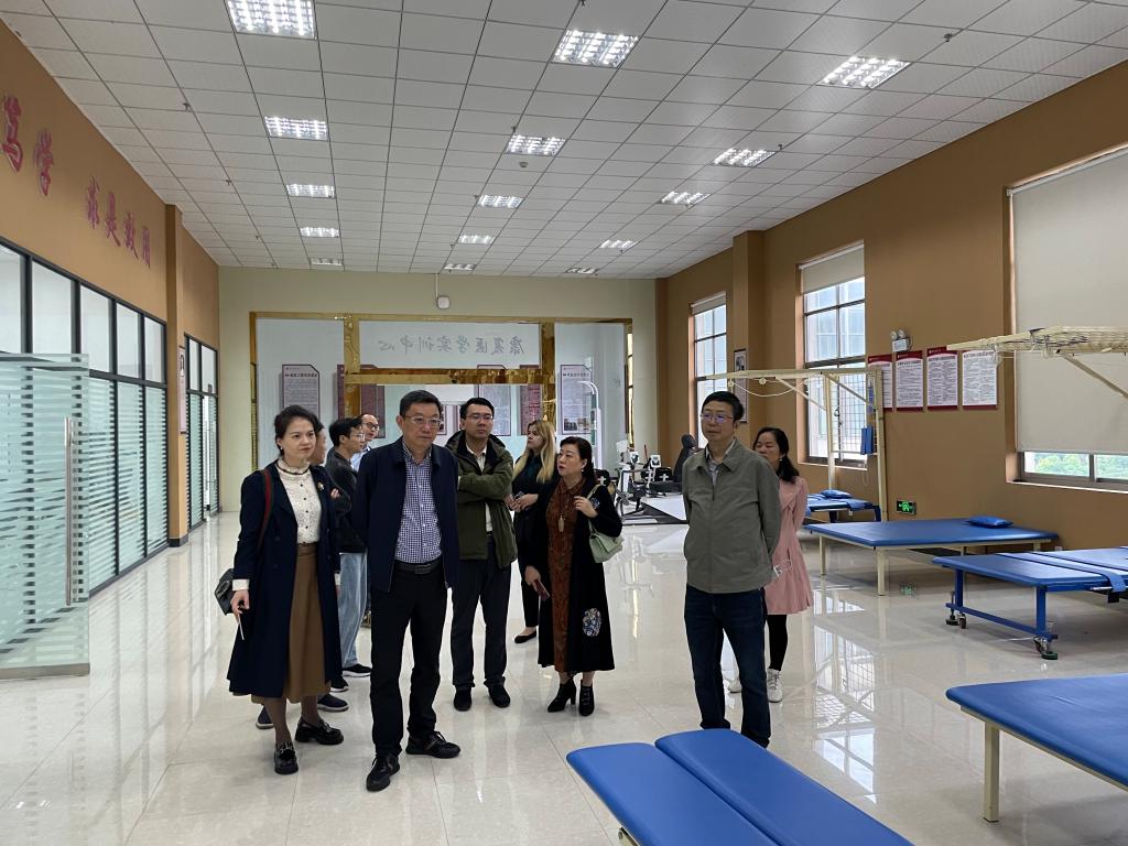 在遵义医科大学,刘立新一行先后走访参观了学校校史馆、新蒲校区和康复医学实训室中心,并举行调研座谈会。遵义医科大学副校长李春鸣对刘立新一行表示热烈欢迎,并对学校历史沿革及发展现状进行了介绍。学校教务处、第一临床医学院、康复医学教研室相关负责人参加座谈,双方围绕康复治疗学专业的学科建设、实验室建设、医教协同等方面进行了深入交流。