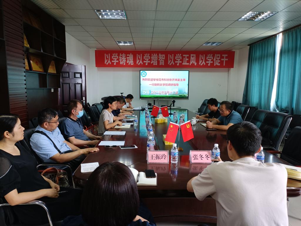 李俊翰对市科协副主席张开来一行的到来表示欢迎,并就钒钛学院的师资条件、学科建设、科技成果等方面进行了介绍。