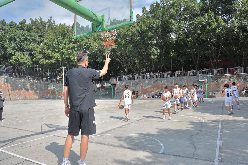 训练后,双方队员进行了三对三友谊赛。