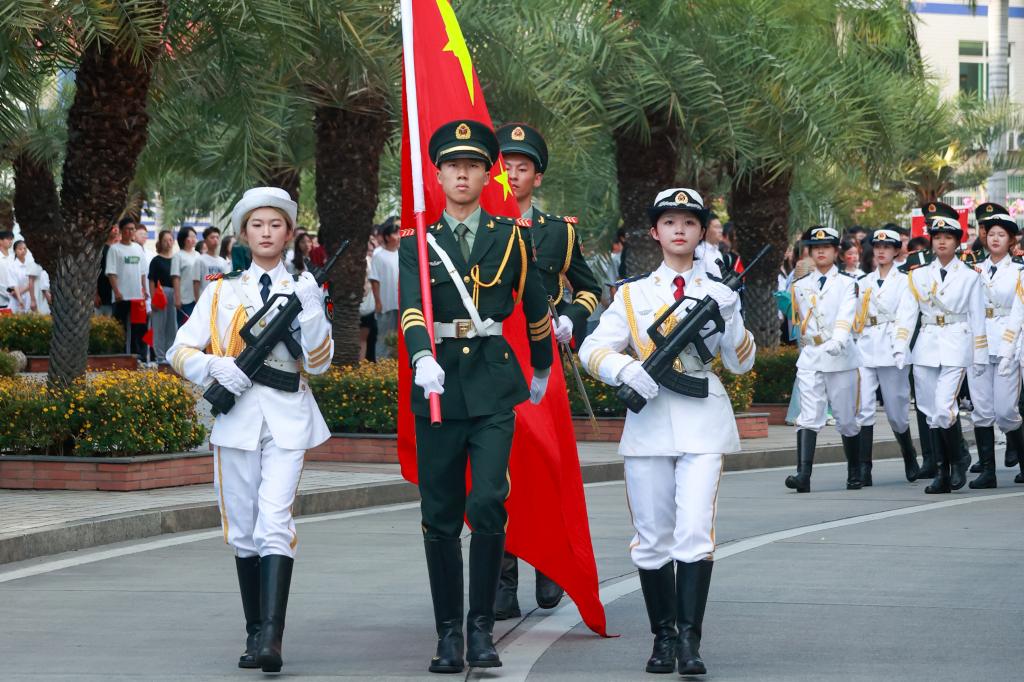 国旗护卫队步伐铿锵,身姿挺拔,护送国旗走向旗台。全体师生庄严肃穆,目光追随着国旗,伴随着嘹亮的国歌声,五星红旗冉冉升起,彰显着每一位攀大人对祖国的敬仰和忠诚。