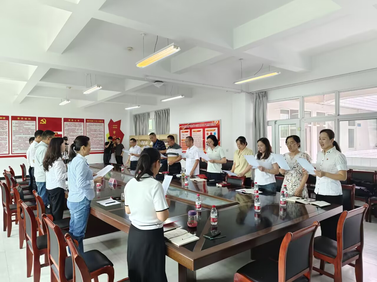 会议期间,党员同志们齐唱红歌“三大纪律八项注意”,并重温入党誓词。