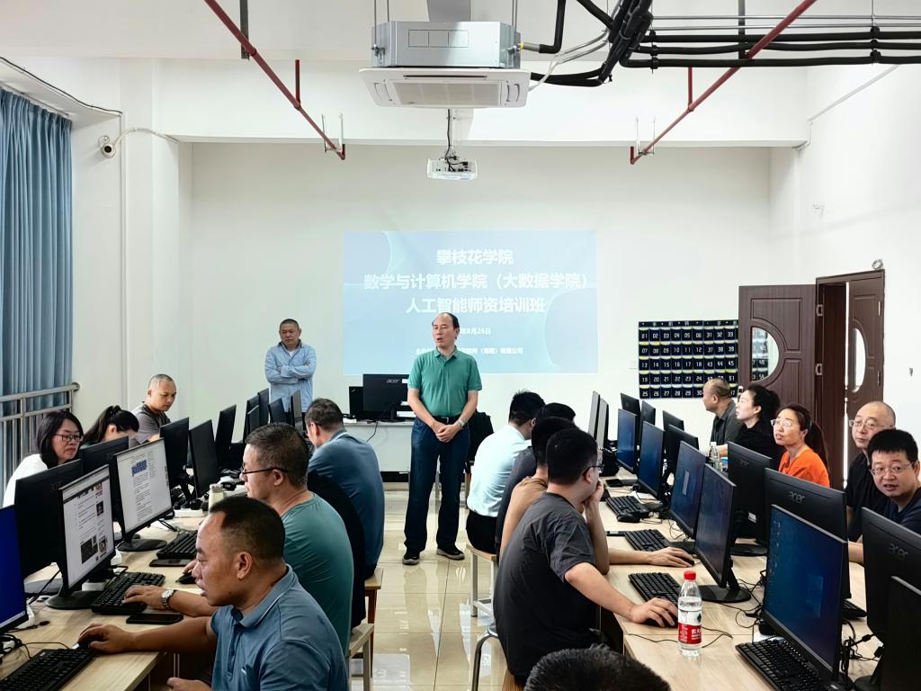 8月26日上午,数计学院承办的“人工智能师资培训班”在产教融合大楼9楼正式开班。高慧强学项目经理王俊、资深培训师屠志鹏、教务处副处长高朝阳和数计学院院长张靖、副院长林宗兵、罗学刚参加开班仪式,数计学院、电气学院相关教师56人参训。