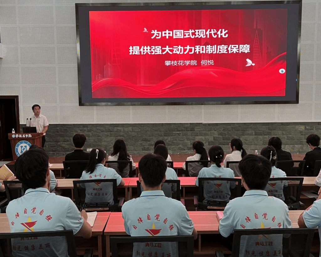 为学习贯彻党的二十届三中全会精神,激励攀大青年为强国建设、民族复兴伟业挺膺担当,9月20日下午,团委于学术报告厅举行“青春为中国式现代化挺膺担当”校级示范团课。第四期“青马工程”班学员和校级团学组织学生代表近100余人参加。
