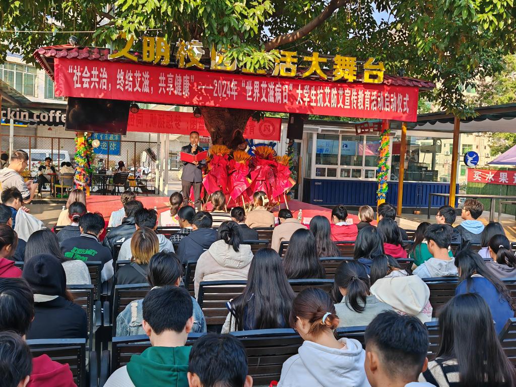 11月30日-12月7日期间,学校开展了2024年“世界艾滋病日”大学生抗艾宣传教育活动启动仪式、防艾知识问答、艾滋病检测咨询以及防艾宣讲等主题活动。通过设立签名墙,摆放防艾知识展板、发放宣传资料、朗诵防艾作品、播放防艾视频等多种方式,营造共同防艾的良好氛围;通过制作红丝带,给艾滋病人写祝福语,拥抱艾滋熊等活动,帮助学生科学了解、正确对待艾滋病;通过防艾知识问答和防艾宣讲,充分发挥基础医学院师生专业知识,广泛传播艾滋病防治知识;联合市疾控中心、东区疾控中心、西区疾控中心等相关部门在柱桂社区提供免费艾滋病检测和咨询,增强学生保护意识和防范能力。