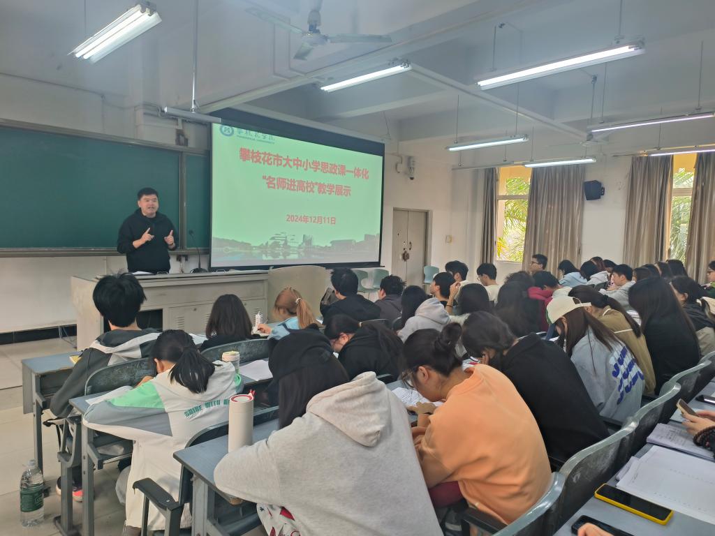 为推进攀枝花市大中小思政课一体化改革创新,为思想政治教育注入新活力,12月11-12日,马克思主义学院携手攀枝花市第三高级中学校、攀枝花市第七高级中学校开展了两场别开生面的形势与政策课。